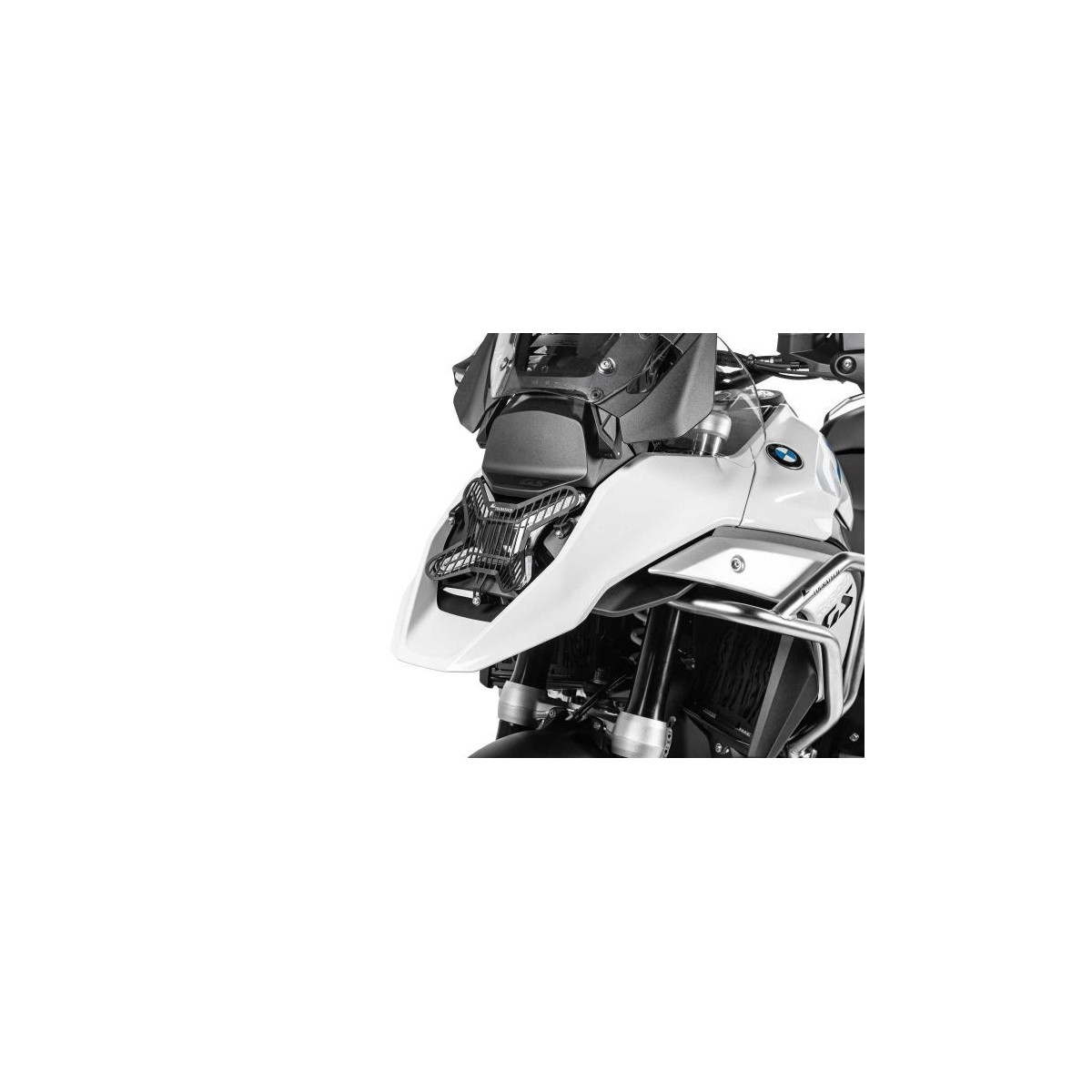 La BMW R 1300 GS est dotée d'un phare avant très impressionnant ! La lentille relativement petite du phare offre moins de surface d'impact que les grands phares, mais ceux-ci méritent également une protection adéquate ! Même une pierre projetée par la moto qui précède peut suffire à vous plonger définitivement dans l'obscurité.