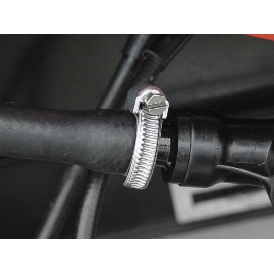 Fixation absolument fiable des tuyaux d’essence. Ces colliers sont très souples. C’est pourquoi ils s’adaptent de façon optimale au tuyau. Comparé aux colliers traditionnels, ils se montent facilement et n’écrasent pas le tuyau d’essence. Fabriqué en RFA. Pour tous les tuyaux d’essence et de dégazage
