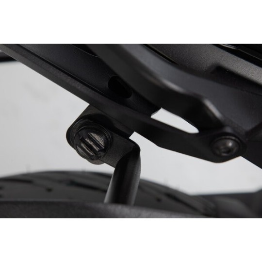 Nous persistons à miser sur les très appréciés verrouillages rapides QUICK-LOCK, qui ont également été perfectionnés dans le cadre des nouveaux développements. Comme d'ordinaire, les fermetures rapides se déverrouillent d'un quart de tour de vis à l'aide d'un tournevis plat ou de notre multitool. En un tour de main, le support est enlevé et les éléments de montage restés sur la moto sont à peine visibles. Si vous souhaitez fixer de manière permanente le support latéral PRO à votre moto, la nouvelle conception des attaches à verrouillage rapide est la solution. Le kit de fixation spécial est superflu puisque le support latéral PRO se visse désormais à l'aide de pièces standard plus avantageuses (M8). Un kit de vis correspondant (M8) est disponible séparément chez SW-MOTECH.