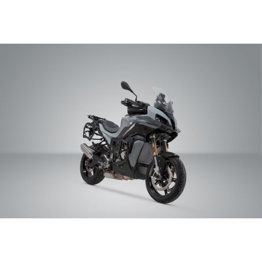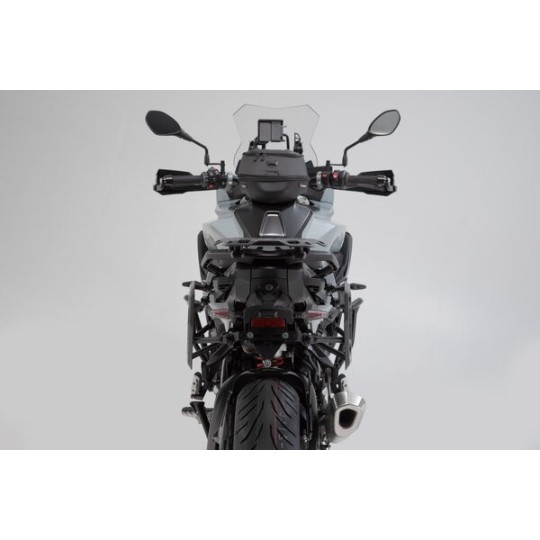 Nous avons spécialement adapté le support latéral PRO à l'arrière de la BMW S 1000 XR afin de le positionner le plus près possible de la moto. La largeur de la structure sans valise est de 450 mm.