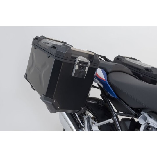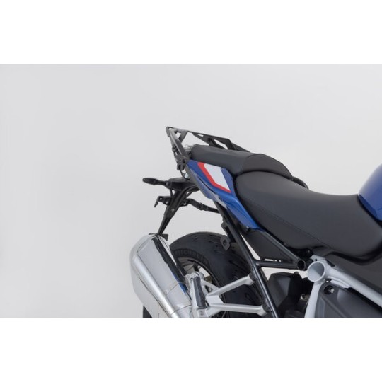 Le support latéral EVO allie manipulation aisée, ajustement parfait et flexibilité maximale. Le système QUICK-LOCK breveté permet le montage et démontage rapide du support. En dévissant les points de montage d'un quart de tour, le support s'enlève complètement. Il ne reste alors que les discrètes pattes de fixation. Grâce aux kits d'adaptation disponibles séparément, le support de valises EVO garantit un maintien sécurisé à bon nombre de valises de SW-MOTECH et d'autres fabricants connus.