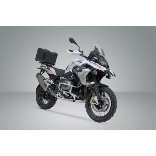 Le système topcase TRAX ADV se compose d'un solide topcase gris argent et du porte-bagages ADVENTURE-RACK correspondant pour BMW R 1250 GS Adventure avec selle rallye.