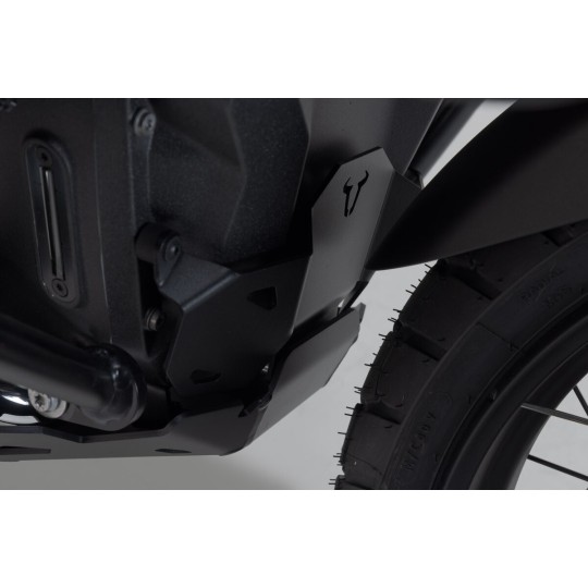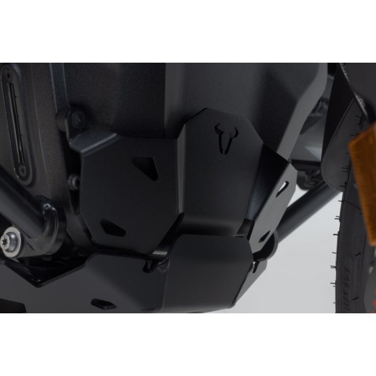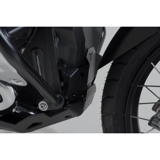 L'extension avant de sabot moteur protège la zone avant du bloc-moteur des projections de pierres. La protection en aluminium brossé et époxy ne peut être installée qu'avec un sabot moteur SW-MOTECH.