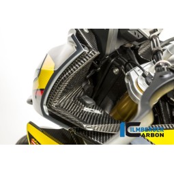 Mais le composant peut exploiter tout son potentiel non seulement techniquement, mais aussi visuellement. Installée en quelques minutes seulement, la valeur de la moto est énormément augmentée. Afin d'obtenir un aspect général particulièrement harmonieux, les couches de fibres sont insérées dans le moule par des experts et alignées les unes avec les autres. La partie en carbone s'intègre parfaitement dans les formes environnantes de la moto. Plus nos pièces sont installées et combinées, plus le résultat est impressionnant. En ce qui concerne le carénage du cadre arrière, la combinaison avec le support de plaque d'immatriculation et le carénage arrière en haut est particulièrement adaptée.