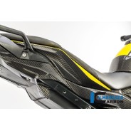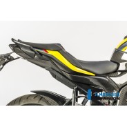 Le carénage de cadre arrière en carbone pour la BMW S 1000 XR remplace les caches d'origine en plastique noir non peints et se fixe au véhicule à l'aide des fixations d'origine. Outre l'esthétique, l'accent est mis sur la réduction du poids (généralement une économie d'environ 70 % par rapport au composant d'origine) et sur une plus grande rigidité.