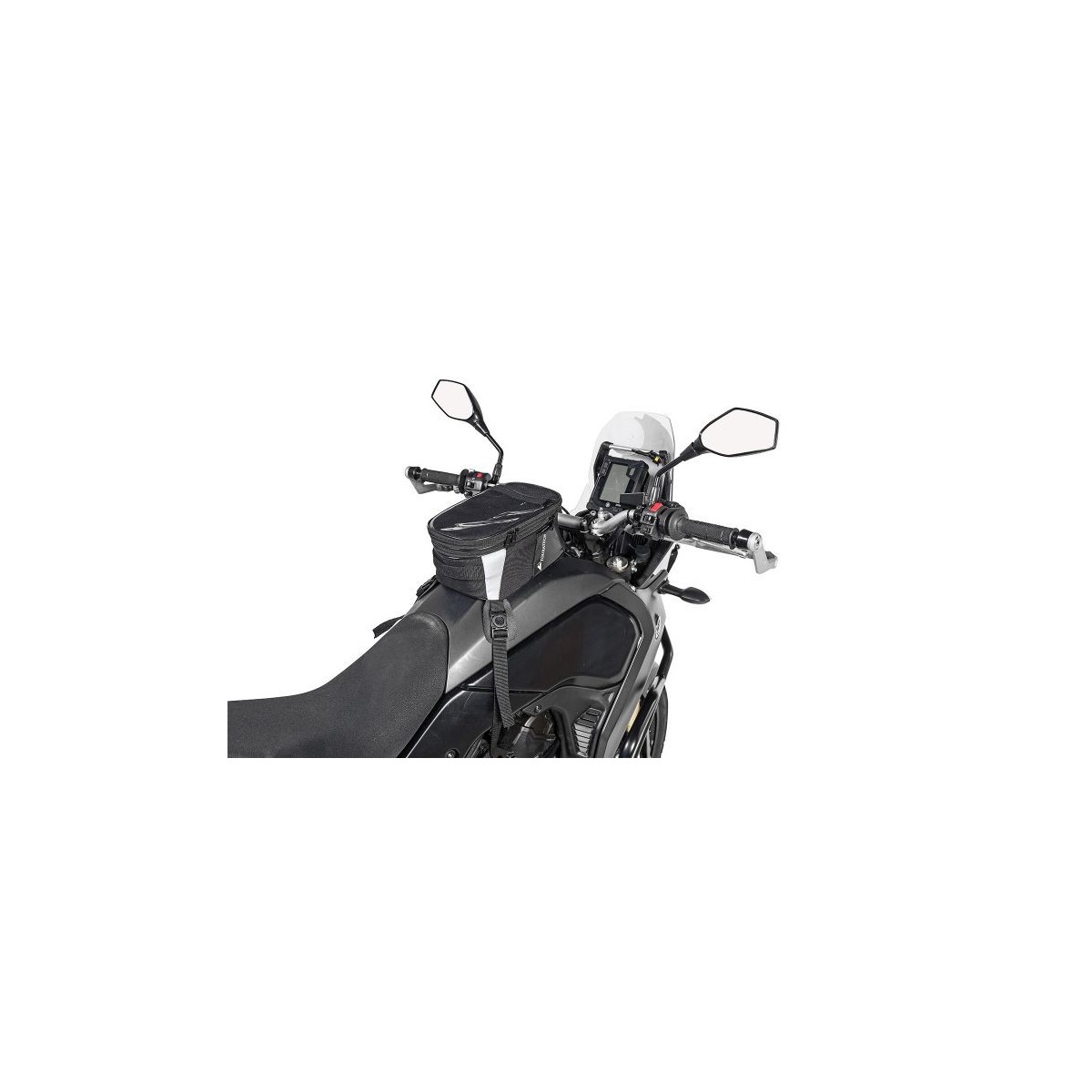 La matière antidérapante spéciale du fond et les sangles réglables individuellement maintiennent la sacoche de réservoir bien en place. La sangle hyper simple et les fermetures à clip permettent d'enlever la sacoche sans difficulté pour faire le plein.
