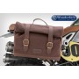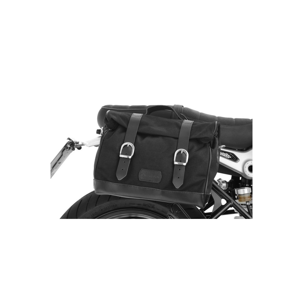 Ces sacoches latérales de style, noires olive, pour coté droit ou coté gauche, en coton huilé, ne sont pas seulement une solution de bagage pratique, elles confèrent également à la R nineT un look décontracté et sympathique. Les finitions en cuir véritable accentuent le coté luxueux, la doublure intérieure résistante donne aux sacoches un coté objet usuel robuste. Une fermeture à glissière et deux sangles de cuir larges permettent de fermer les sacoches avec sécurité et style. Le contenu de 9,5 litres par sacoche peut être protégé des intempéries par des sacoches intérieures étanches à l'eau.