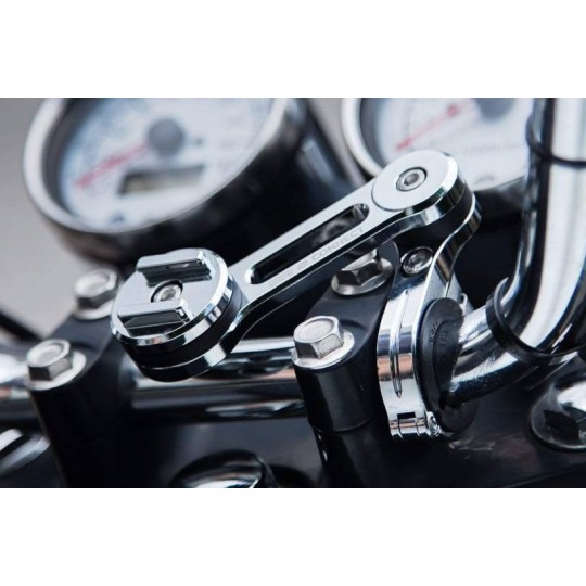 Le support est fraisé CNC dans de l'aluminium aéronautique et s'adapte sur les guidons standards et surdimensionnés (diamètres de 22,2 / 25,4 / 28,6 / 31,7 mm).