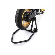 Dispositif de levage professionnel, pratique et bien pensé pour les BMW sans béquille et aide idéale lorsque la machine doit être absolument stable pour les travaux d'entretien, etc.