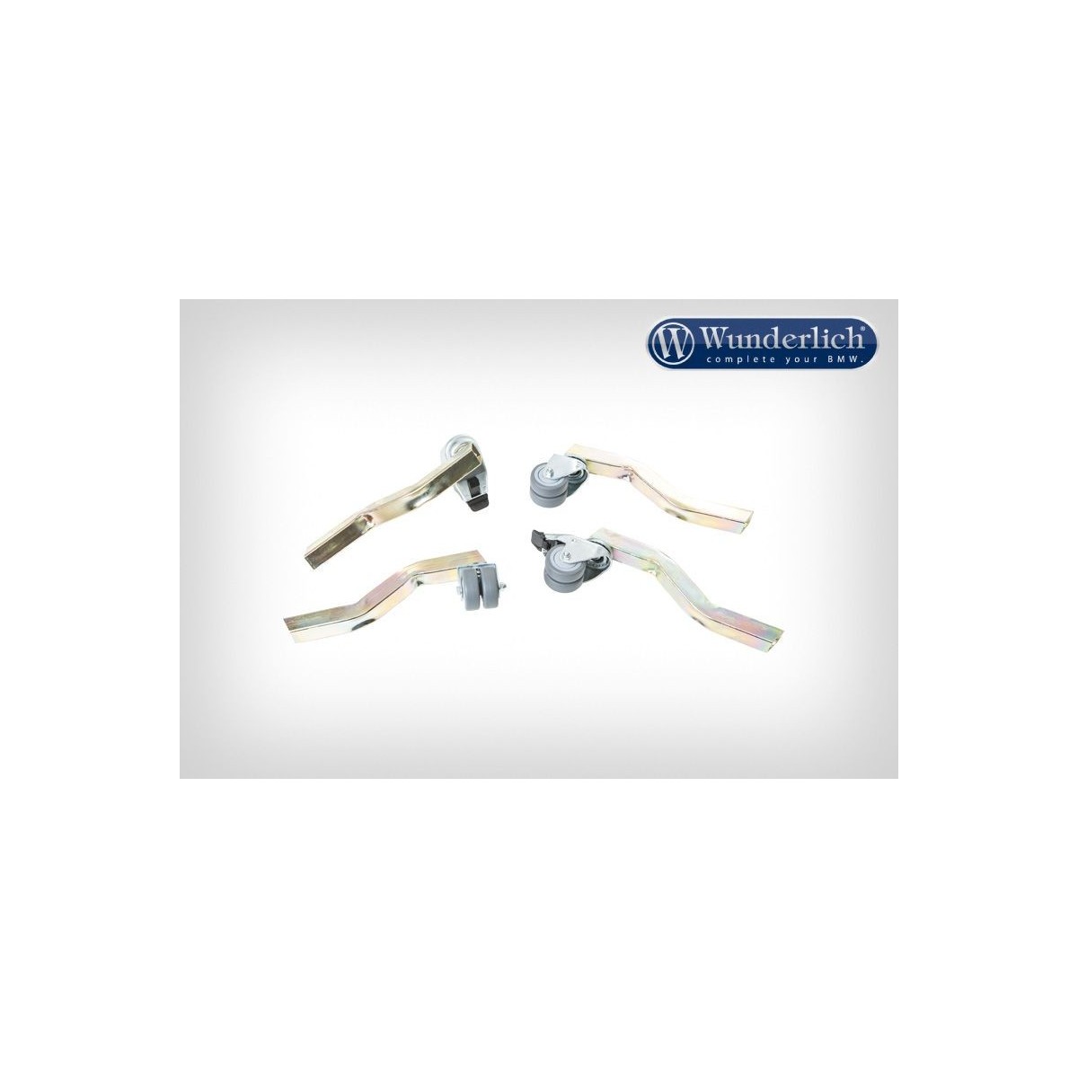 Enlever tout simplement les pieds et embouts de la béquille centrale, monter les adaptateurs à roulettes, visser les vis sans tête, ET LE TOUR EST JOUE !