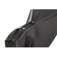 Trois loquets réglables permettent un réglage individuel de la largeur dans la zone arrière - ils sont facilement accessibles sur le dessus de la couverture - afin que la moto puisse être rangée sous la bâche avec ou sans caisse