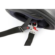 Ce compagnon pratique s'adapte à tous les casques munis d'une double fermeture à anneau en D : La sangle de transport est simplement reliée à la double fermeture à anneau en D.