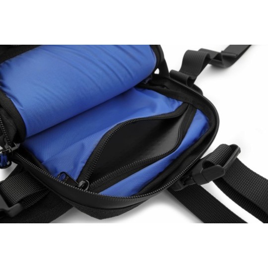 Tous les ustensiles qui doivent toujours être "sur l'homme" ou "sur la femme" à moto trouvent leur place dans notre sacoche jambière innovante fabriquée en CORDURA® TrueLock™. Grâce à la ceinture et à la boucle de jambe réglables, elle reste bien en place et confortable sur la cuisse, sans gêner ni serrer. Le renfort indéformable protège le contenu de manière fiable et prévient tout gonflement et flottement à hautes vitesses. Notre doublure maison bleue, assure une bonne visibilité.