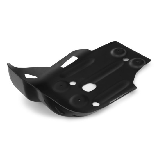 Nous parvenons ainsi à réaliser des formes de composants et des géométries complexes (surtout asymétriques) pour lesquelles nous obtenons un poids plus faible grâce à l’optimisation de l’épaisseur de matériau, tout en bénéficiant en même temps d'une rigidité des composants et d’une stabilité mécanique élevées. Le résultat est une protection de moteur résistante, au poids et à la forme optimisés, qui épouse si étroitement et organiquement le groupe, que le principe de configuration »Form follows function« devient évident. Elle est disponible en noir thermolaqué.