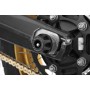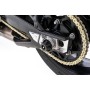 La fourche est tenue à bonne distance du goudron et cette protection empêche les dégâts importants.