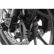 Capot de protection massif des étriers de frein « brembo ». Il assure une protection efficace en cas de sollicitation mécanique et s'insèrent dans le design sportif de la GS. L'effet protecteur élevé résulte de la rigidité de l’élément structurel en acier spécial chanfreiné tridimensionnellement, pourvu d'ouvertures fraisées. Le logo « brembo » en relief sur les freins reste ainsi bien visible. Notre capot encadre de façon sûre et fiable les étriers de frein exposés ainsi que les raccordements de gaines grâce à sa fixation en deux points bien appropriée.