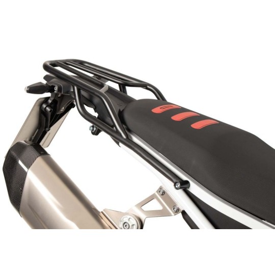 Cela répond aux souhaits de nombreux conducteurs de F 900 GS qui souhaitent un tel porte-bagages pour leur F 900 GS modifiée. Le porte-bagages a une forme contemporaine et s'adapte parfaitement à la F 900 GS. Il est particulièrement adapté au transport de bagages souples.