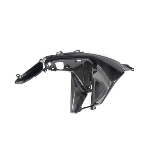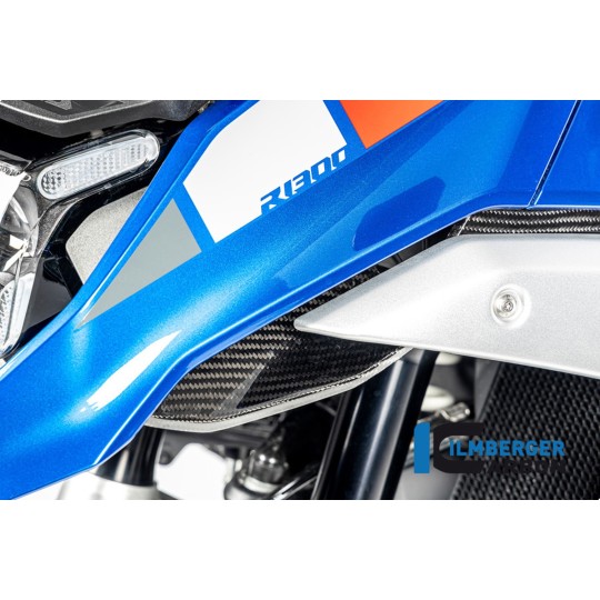 En raison de sa position proéminente au centre de la moto, il ajoute une touche de style et donne à votre moto une note dynamique. En même temps, il protège le radiateur contre la saleté et les dommages. Le cache est fabriqué en carbone de haute qualité, ce qui garantit non seulement légèreté et stabilité, mais impressionne aussi par son apparence élégante. Augmentez la reconnaissance de votre BMW R 1300 GS et donnez-lui une touche de luxe avec le cache de sortie d'air d'Ilmberger Carbon.