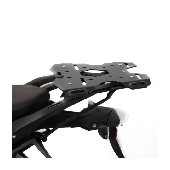 Conçu à la fois pour être utilisé comme un porte-colis classico où un sac à dos ou un sac peut être attaché en utilisant les fentes sur le périmètre, et pour monter un top case avec la plaque correspondante (articles non fournis).