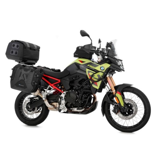 Il aide à garder la moto étroite. Cela est tout aussi avantageux que le tissu de haute qualité, résistant à l'usure et à l'abrasion, utilisé lorsqu'il faut se frayer un chemin à travers la végétation sur des terrains difficiles. Malgré son faible poids propre, le softcase X-BAG, dont le verrouillage sur le support est verrouillable, offre un volume de 40 litres impressionnant et une charge de 10 kilogrammes. Le système MOLLE ainsi que les huit autres points de fixation renforcés permettent de fixer facilement d'autres sacs ou bagages adaptés. Grâce à son excellent tissu, le topcase est déjà imperméable. La housse de pluie le rend totalement étanche si nécessaire. Les éléments réfléchissants assurent une bonne visibilité et sécurité dans l'obscurité et sous la pluie.