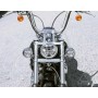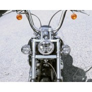 Ces brides sont destinées au montage des éclairages sur les fourches qui disposent de tubes supérieurs exposés que l'on trouve couramment sur les cruisers et les motos standard. Les brides permettent de positionner les lumière de chaque côté du phare, donnant un style classique sans barre de montage emcombrante et peu esthétique.