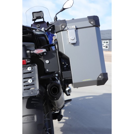 Cet adaptateur vous permet d'installer vos valises latérales BUMOT conçues pour les supports d'origine BMW sur les supports plats BUMOT. Idéal pour adapter vos valises à une nouvelle configuration ou pour utiliser des supports plats avec des valises courbées pour échappement.