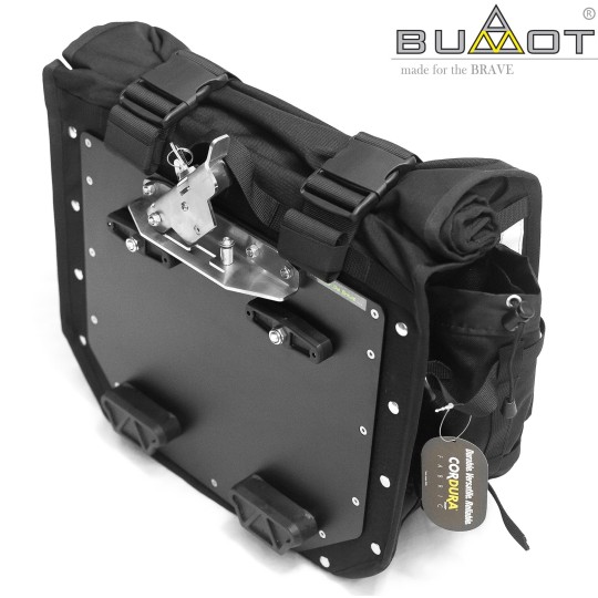 Le système de valises souples BUMOT Xtremada offre une solution unique et pratique pour les aventuriers hors route. Ce système innovant permet d'interchanger rapidement et facilement des valises en aluminium avec des valises souples, sans nécessiter de plaques d'adaptation, de matériel supplémentaire ou de sangles.