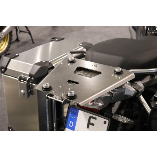 Cette plaque de montage offre une solution pratique et sécurisée pour ajouter un top case à votre BMW F850GSA.