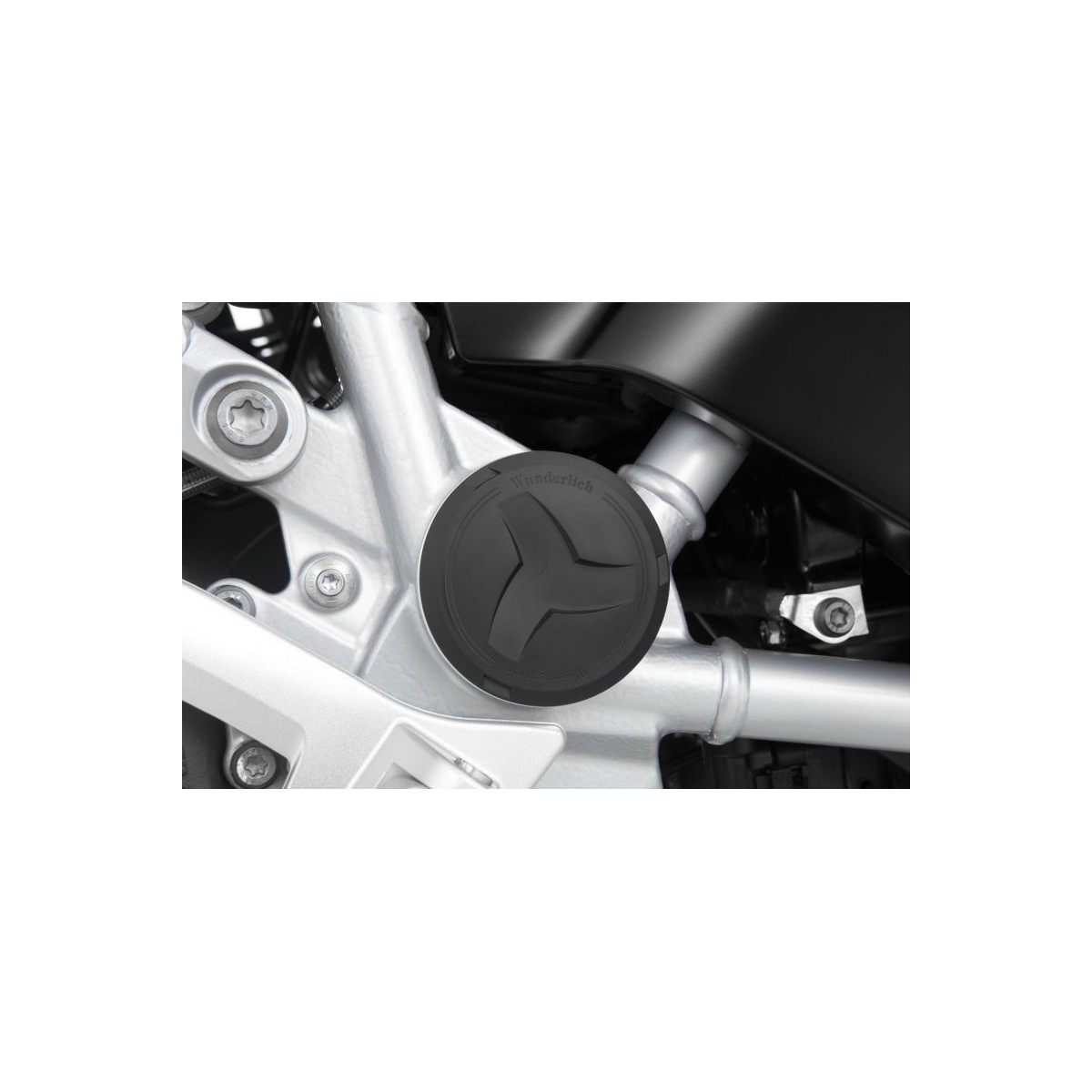 Les ouvertures inesthétiques du cadre de la BMW R 1200/1250 RT LC sont non seulement soigneusement fermées avec ces bouchons, mais elles améliorent également visiblement l'apparence de la BMW, car ce sont les petits détails qui font une grande différence. Les bouchons de cadre Wunderlich offrent une protection contre la corrosion en empêchant la formation de nids de saleté et d'oxydation, car ni la saleté indésirable ni l'humidité ne peuvent s'accumuler à l'intérieur des tubes du cadre. Les bouchons de cadre sont fabriqués en élastomère noir de haute qualité et extrêmement résistant.
