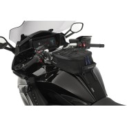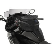 Le support système se fixe au véhicule en un tour de main et retient la sacoche de réservoir au moyen d'une attache rapide. Il suffit de faire glisser la languette de maintien de la sacoche de réservoir à travers la fixation sur le support et de la verrouiller à l'avant. Une attache simple et de ce fait astucieuse qui permet également un montage/démontage avec des gants et des doigts gourds en une seconde.