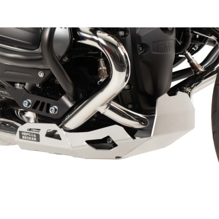 Le sabot de protection Hepco-Becker protège les collecteurs d'échappement et le bloc moteur contre les impacts et les projections de gravier, même en cas de contacts violents avec le sol, ce qui est souvent le cas en tout-terrain.