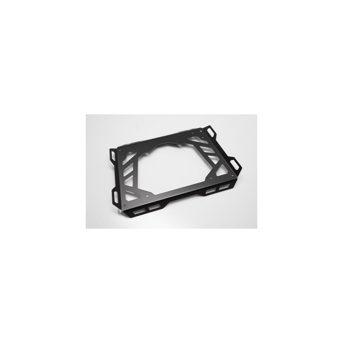 Transport sécurisé des larges sacs et des sacs polochons : l'extension robuste peut être montée sur n'importe quel ADVENTURE-RACK à l'aide de quatre vis pour élargir encore la surface de contact déjà généreuse, d'environ 30 %. Les nombreux points d'arrimage et les éléments relevés avant et arrière de l'extension sont adaptés pour une fixation sécurisée de bagages volumineux. Une finition époxy noire protège la construction en aluminium contre la corrosion et lui donne un look attrayant.