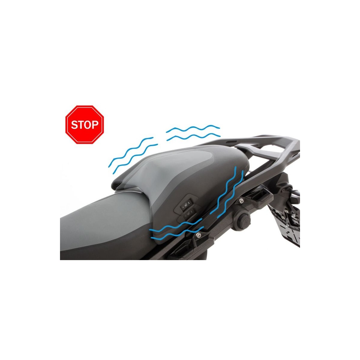 Avec le siège passager standard de la BMW R 1300 GS, l'élément de siège peut être ajusté en état installé par un mécanisme chargé par ressort dans la position avant ou arrière. Puisque le mécanisme nécessite techniquement un certain jeu, le siège passager est assez lâche, ce qui peut transmettre au passager une sensation d'insécurité d'instabilité pendant le fonctionnement. Avec notre kit de fixation, le siège est fixé de manière permanente et sans jeu dans la position préférée, offrant un maintien ferme et ainsi une sensation de sécurité. Le kit de fixation est composé de quatre manchons en plastique solidement dimensionnés, qui remplacent les ressorts standards.