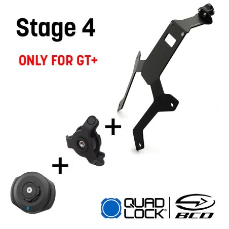 Pour convenir le mieux à votre utilisation, notre support existe en plusieurs déclinaisons contenant plus ou moins d'accessoires Quad Lock® : STAGE 1 ; STAGE 2 ; STAGE 3.