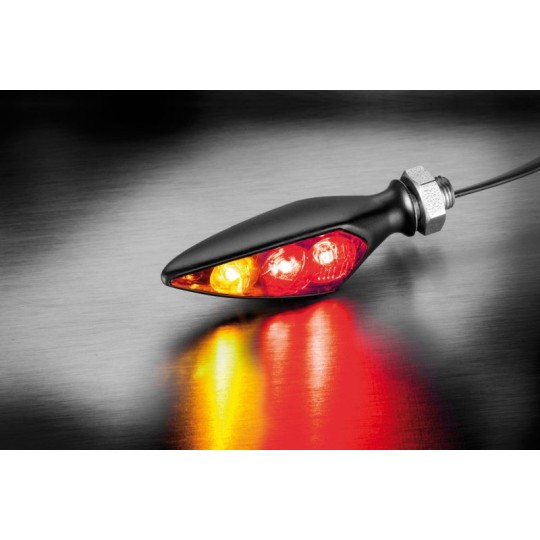 Nous avons conçu cet ensemble pour ceux qui souhaitent réduire au maximum, voire totalement dissimuler, la visibilité du combiné de clignotants arrière de leur moto – sans pour autant compromettre la sécurité routière. C’est pourquoi les clignotants que nous avons sélectionnés se distinguent par une signalisation lumineuse exceptionnelle, avec une différenciation nette entre clignotant, feu stop et feu arrière.
