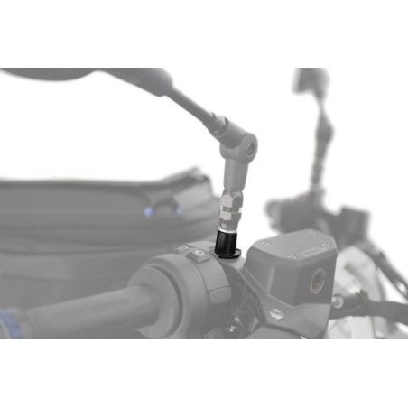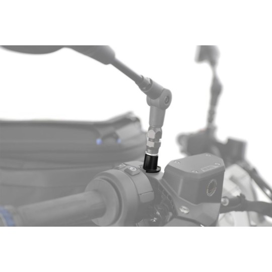 Le support pour rétroviseurs additionnels permet d’installer deux miroirs supplémentaires en complément des rétroviseurs d’origine, intégrés dans le carénage à une position basse. Pour des raisons d’ergonomie visuelle, un positionnement dans l’axe naturel du regard est optimal, car il permet une observation intuitive et sans effort de la circulation arrière. Avec ces supports, les rétroviseurs peuvent être positionnés de façon à améliorer nettement le champ de vision arrière, ce qui contribue à une sécurité active accrue lors de la conduite. Les deux paires de rétroviseurs se complètent idéalement pour garantir une excellente perception de tout ce qui se passe derrière la moto. Les supports permettent de modifier les commandes d’origine – qui ne disposent pas de supports de rétroviseur en série – afin de monter des rétroviseurs supplémentaires en combinaison avec le bouton SOS et l’interrupteur des feux additionnels.