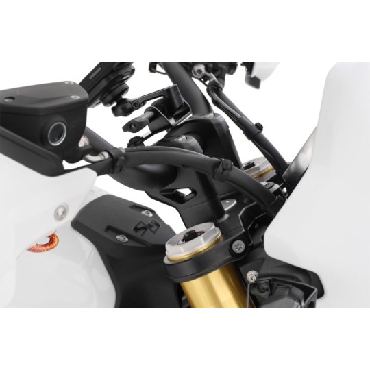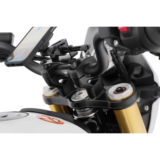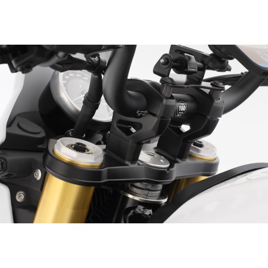 Le rehausseur de guidon conçu par nos ingénieurs augmente le guidon de 20 mm. Les effets ergonomiques sont importants : ils détendent les muscles du dos et des bras, tout en soulageant la colonne vertébrale, le bassin et le coccyx. Le confort et l’aptitude au voyage sont ainsi considérablement améliorés. Une conduite détendue améliore également la sécurité passive – tout comme une meilleure vue sur la circulation grâce à une position de conduite plus droite.