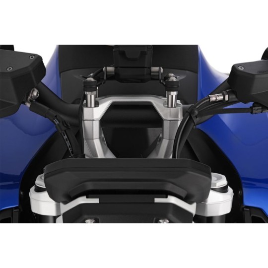 Ce rehausseur de guidon, spécialement développé par nos ingénieurs, augmente la hauteur du guidon de 25 millimètres de manière modérée. Les effets ergonomiques sont significatifs : il détend la musculature dorsale et les bras, tout en soulageant la colonne vertébrale, le bassin et le coccyx. Le confort de conduite et la capacité de voyager sur de longues distances sont ainsi considérablement améliorés. Une posture de conduite plus détendue contribue en outre à la sécurité active, notamment grâce à une meilleure visibilité du trafic due à la position assise plus droite.