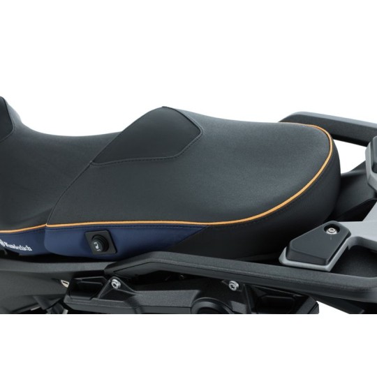 Nous fabriquons nos selles passager avec un profil 3D ergonomique unique. La forme et l'angle du noyau de l'assise, conçu avec précision, favorisent une position pelvienne naturelle et ergonomique. L'une des particularités de notre selle passager est le renfort avant intégré qui assure un maintien optimal lors du freinage. Ainsi parfaitement intégrée à la moto, la conduite devient plus détendue et donc plus dynamique. De plus, une assise confortable améliore indéniablement la sécurité passive. Cette selle AKTIVKOMFORT est dotée de la technologie Thermo Pro , qui réduit la température de la surface d'assise jusqu'à 25 °C en plein soleil, même en été, par rapport aux revêtements classiques. Nous proposons également une selle pilote assortie.