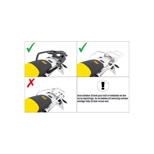 Elle offre un maintien parfait et un contrôle sûr et actif en cas de sortie accélérée, en particulier aussi lors du freinage : Qui ne connait pas cela, lorsque le passager pousse soudainement de l’arrière lors de la manœuvre et que l’on doit s’appuyer soudainement, tout en devant piloter, dans une situation de freinage éventuellement critique. Grâce au contour de maintien mis au point spécialement par Wunderlich, ces moments de frayeur lors du freinage sont relégués au passé. Le contour 3-D ergonomique et innovateur veille également à faire oublier les points de pression au niveau de l’intérieur des cuisses en se levant au feu rouge.