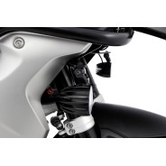 Avec la surface d'éclairage unique et brillante de la nouvelle technologie de lentilles exceptionnelle, la puissance d'éclairage extrême de la technologie LED HighPower Kellermann du système intégré de feux diurnes à LED DAYRON® garantit une visibilité optimale lors de la circulation. La disposition du système innovant de feux diurnes agrandit visuellement la silhouette avant et l'apparence de la moto.