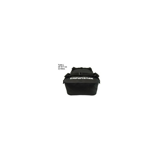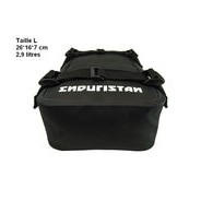 La sacoche de garde-boue Enduristan permet de transporter quelques affaires légères sur le garde-boue.