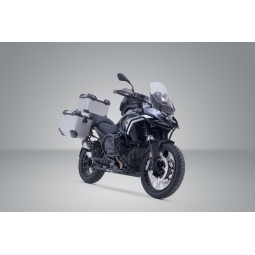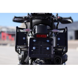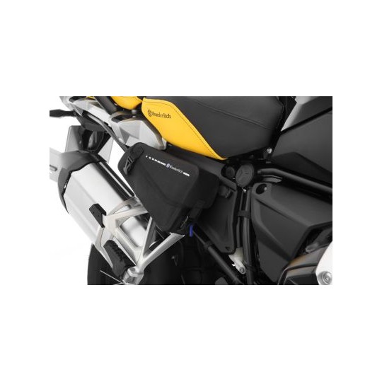 Ces deux sacoches latérales fonctionnelles DRYBAG sont parfaitement ajustées à nos carénages de cadre. Les fermetures rapides LOXX placées à l’intérieur permettent de les mettre en place ou de les retirer en un tour de main. Les sacoches sont confectionnées en CORDURA® 500 parfaitement travaillé, laminé sur l’intérieur avec une couche TPU étanche à l’eau. Toutes les coutures et tous les laminages sont soudés de manière étanche. Le capot de protection, qui vient recouvrir en plus les fermetures éclair de manière étanche à l’eau et à la poussière, et sécurisé par deux clips de qualité supérieure, assure l’étanchéité à l’eau. Elles offrent un espace supplémentaire pour tout ce qui doit rester à portée de main en route, comme par ex. la trousse à outils ou de secours. Le montage près du centre de gravité est particulièrement favorable à une tenue de route neutre. Surtout en utilisation tout-terrain. Sans compromettre la liberté de mouvement du conducteur et du passager.