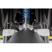Les butées de direction originale, le cadre et le réservoir sont protégés de manière fiable par nos limitations, qui s’appuient lors d’un braquage de guidon maximal sur un endroit stable adapté et réduisent le risque de détérioration ! Elles limitent et amortissent le braquage du guidon en cas de renversement ou de chute grâce à des blocs caoutchouc grand format, bien avant que la butée de direction de série ne soit atteinte de plein fouet. Les caractéristiques de matériaux des limitations sont sélectionnés de manière à ce que l’amortissement de butée soit d’abord souple et qu’il se fasse de manière progressive avec l’augmentation du braquage du guidon. Elles absorbent l’énergie de l’impact, protègent les butées de direction originales et réduisent le risque de déformation ou d’interruption de la butée de direction de série.