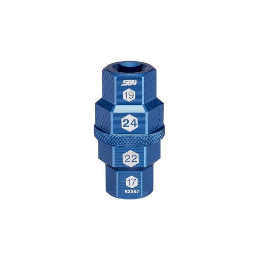 Outil pour axe (17-22 mm/24-19 mm) avec six pans creux à monter sur une clé à cliquet 3/8"