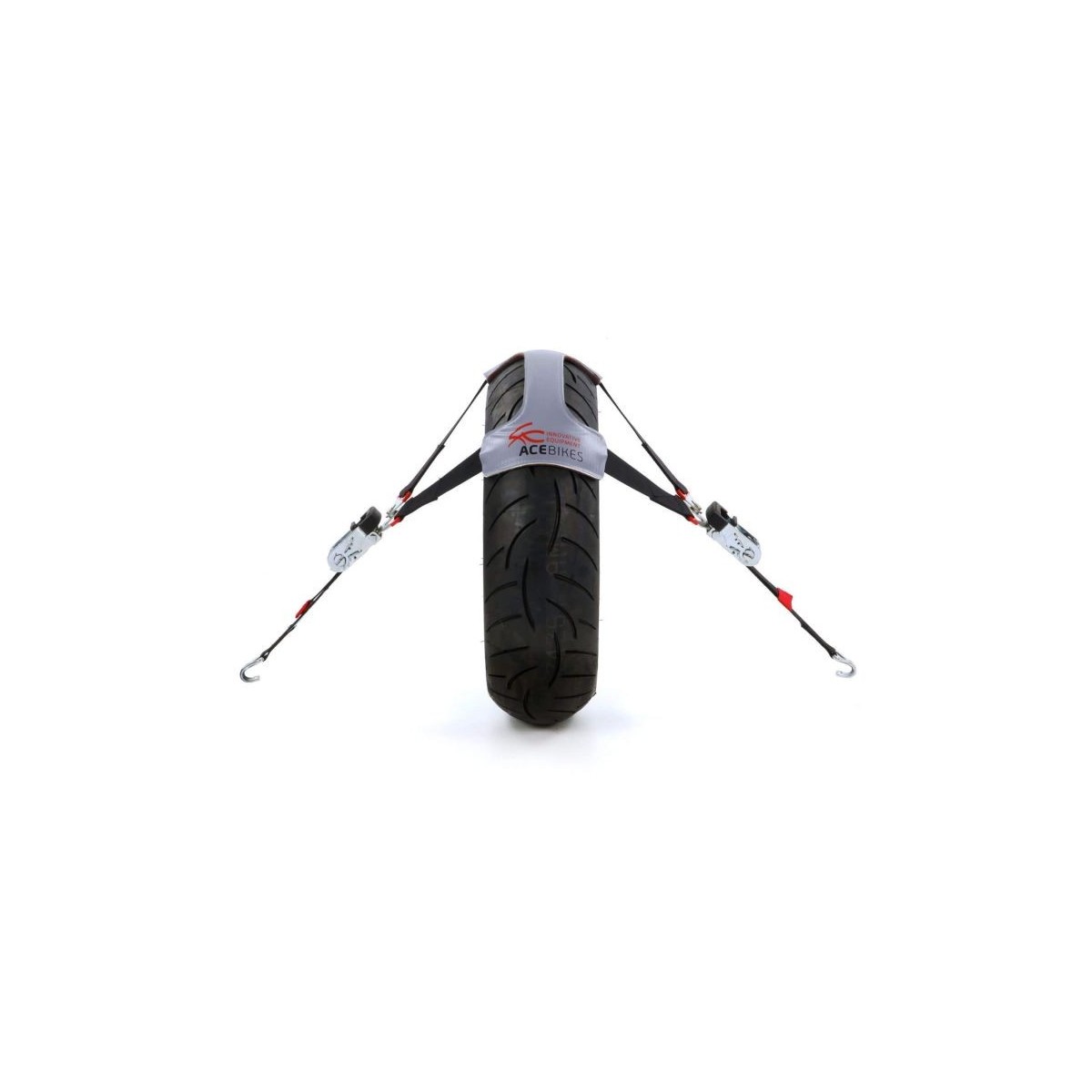 Acebikes TyreFix® est un système de fixation par sangle fiable et facile à monter. Ce système de système de fixation par sangle permet de fixer tout type de motos de manière sûre de sorte à ce que votre BMW soit protégée contre le renversement et les détériorations en résultant