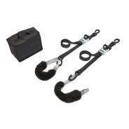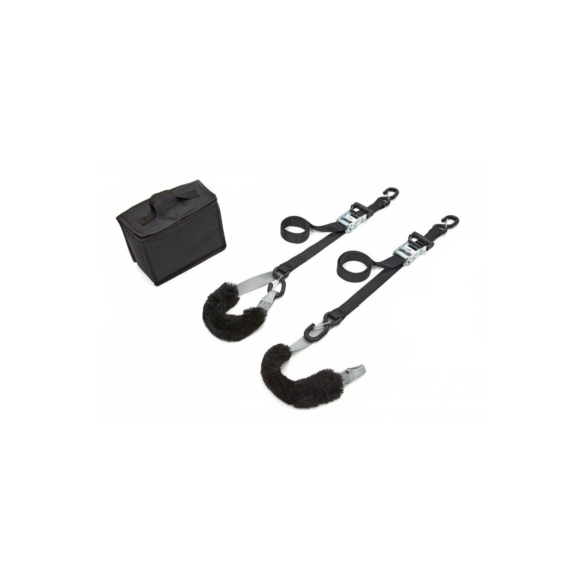 Lot de sangle d’arrimage Heavy-Duty pratique, ultra résistante en polyester de qualité supérieure avec un cliquet pratique. Ce lot de sangle d’arrimage en polyester noir-gris de 197 cm de long comprend un crochet galvanisé, plastifié et est spécialement conçu pour les motos lourdes.