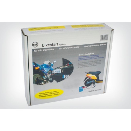 Il est presque impossible, ou cela ne réussit qu'avec un risque sérieux de court circuit, de démarrer une moto par actionnement prolongé du démarreur. La prise d'origine serait grillée en cas d'actionnement prolongé du démarreur , et c'est pourquoi ce système autonome a été développé (non compatible avec la prise d'origine).