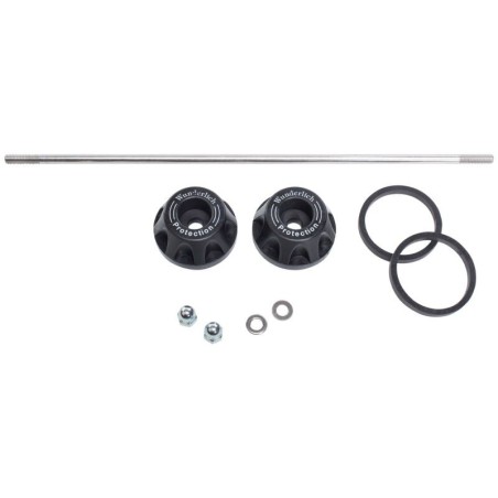 La fourche est tenue à bonne distance du goudron et cette protection empêche les dégâts importants.
