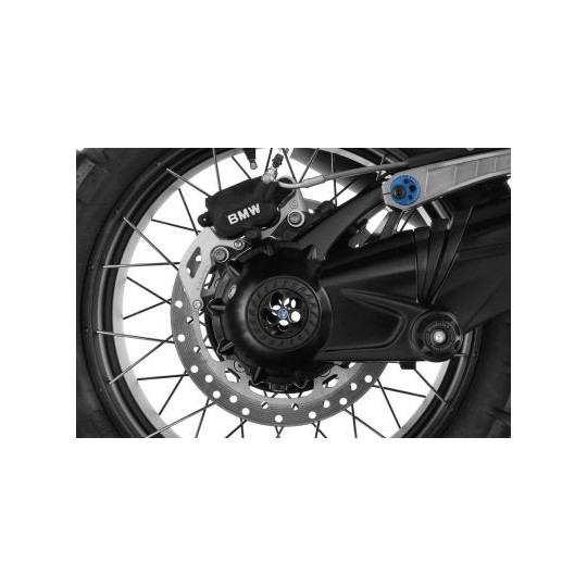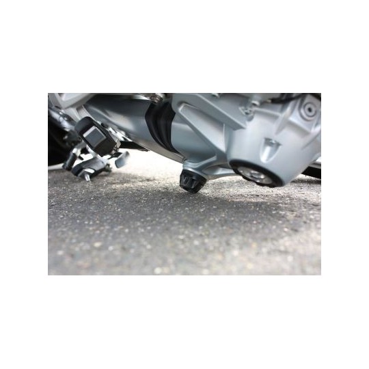 Les tampons protecteurs pour l'essieu veillent en cas de renversement de la moto ou de chute, à ce que le bras oscillant, l’axe de roue et l’extrémité de transmission du cardan soient protégés efficacement des détériorations.